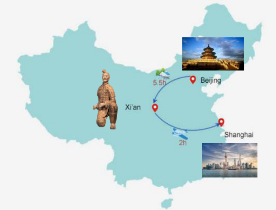 The "Beijing-Xi'an-Shanghai" route stands as one of the three pillars of classic China tour, guiding you through the essence of Chinese civilization across time and space. In Beijing, feel the imperial grandeur of the Forbidden City; in Xi'an, marvel at the monumental wonder of the 2,000-year-old Terracotta Army; and finally, arrive in Shanghai to immerse yourself in the cyberpunk skyline of Lujiazui and experience the pulse of a futuristic metropolis. In the shortest time, capture the brilliance of two millennia of China.